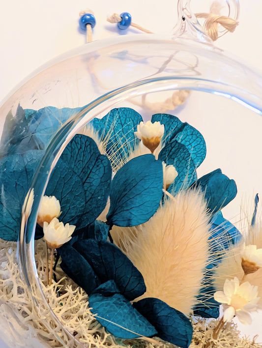 Boule Hortensias bleus - terrarium de fleurs séchées 🇫🇷