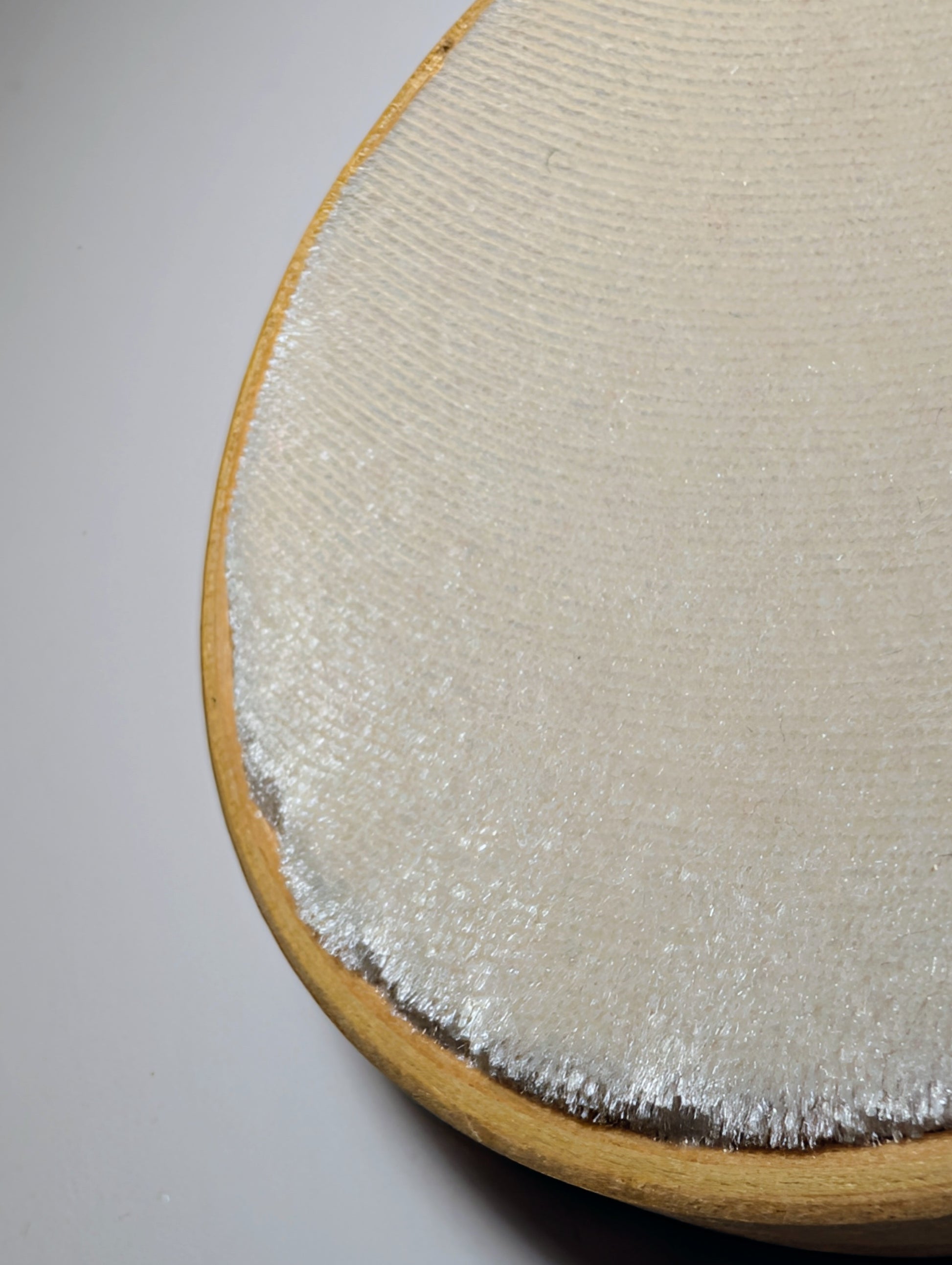 L'envers de la broderie est fermé avec du velours blanc soyeux pour un effet chaleureux.
