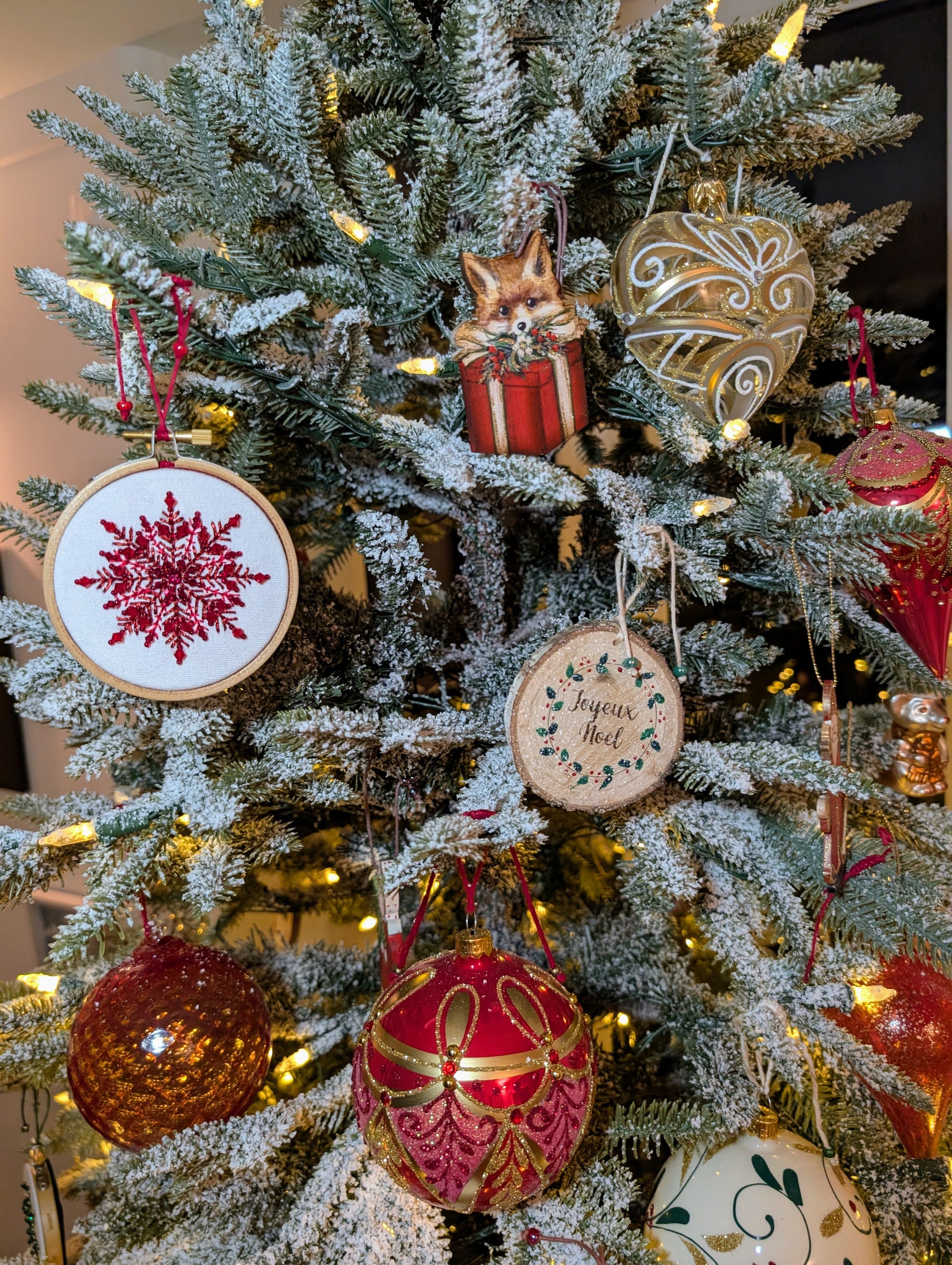L'envers de la broderie est fermé avec du velours rouge soyeux pour un effet chaleureux.