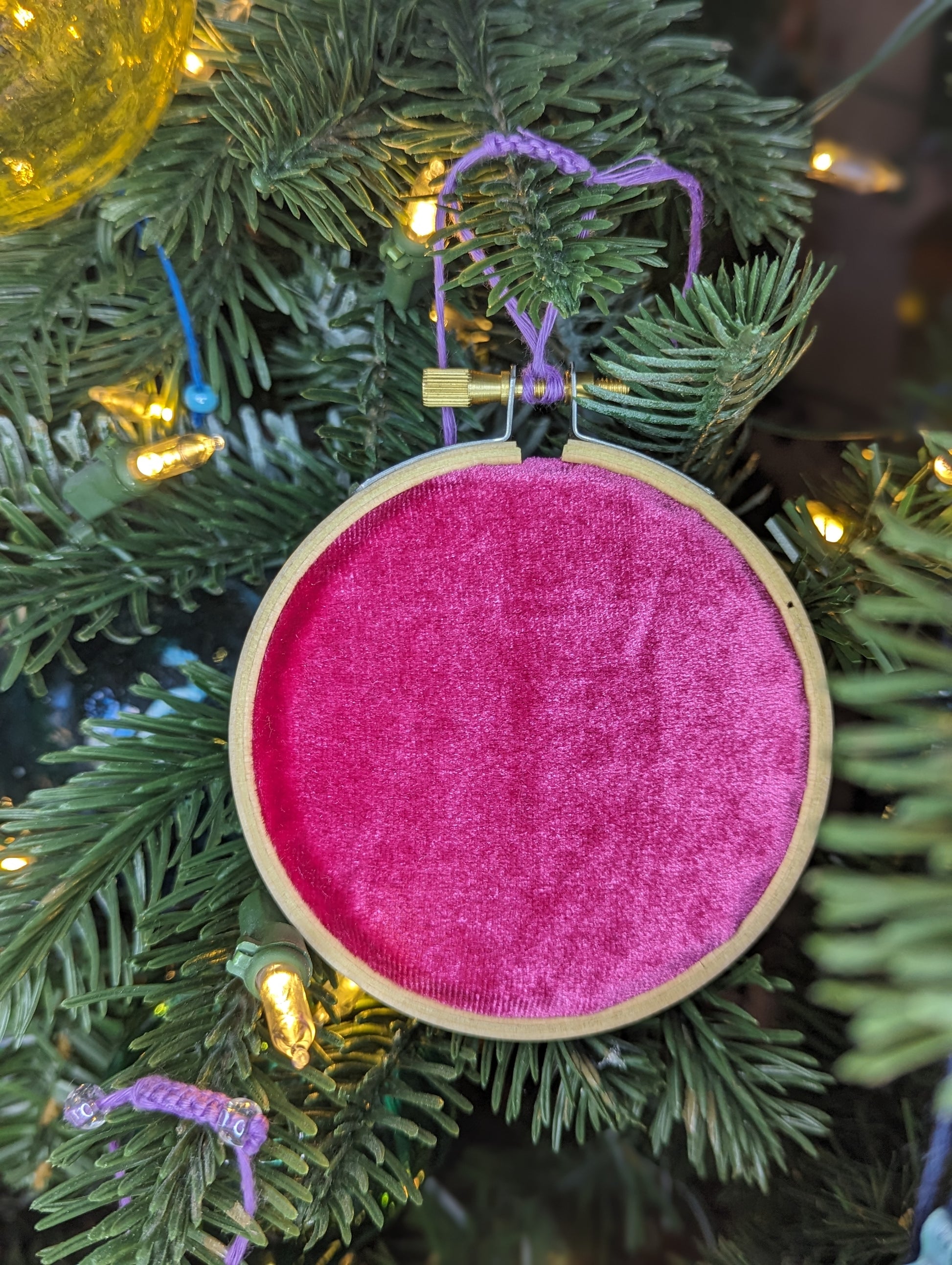 L'envers de la broderie est fermé avec du velours rose fuchsia soyeux pour un effet chaleureux.