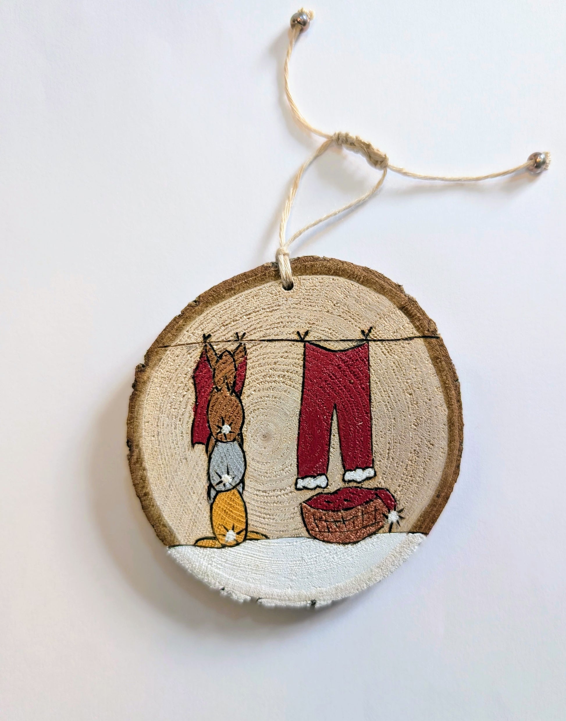 Aimant particulièrement les décorations de Noël naturelles aux couleurs traditionnelles, Sophie a imaginé des ornements en rondelles de bois en s'inspirant de la nature. Ses dessins, d'une belle tendresse, sont réalisés en pyrogravure puis peints et réhaussés deci delà d'une touche de paillettes.